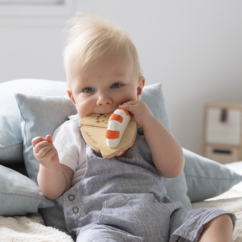 Ce bois tendre et résistant, auquel aucun traitement chimique n’est ajouté, s’associe parfaitement à notre caoutchouc naturel pour offrir à bébé de beaux moments de jeu. Le bateau flotte sur l’eau et avec sa bouée à mordiller, amovible et texturée en caoutchouc naturel, c’est l’amusement garanti dans le bain de bébé !