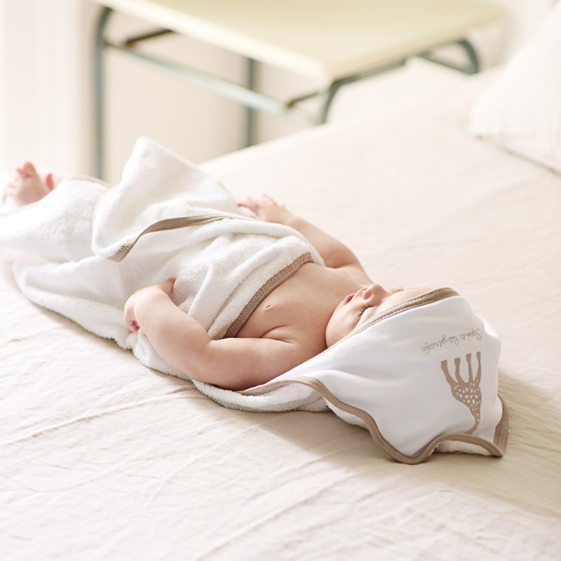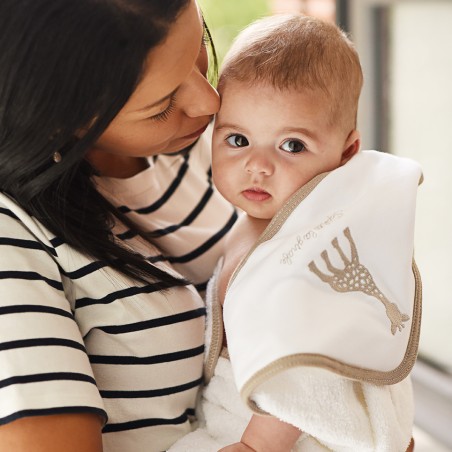 Cape de bain à l'effigie de Sophie la girafe parfaite pour entourer bébé de douceur dès la sortie du bain!