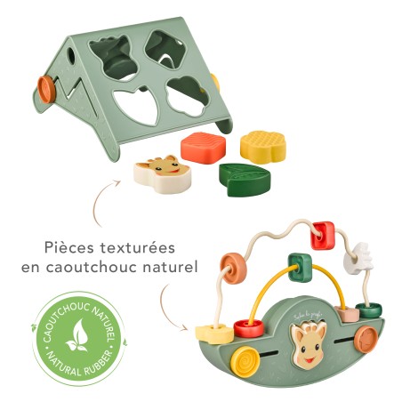 Découvrez deux nouveautés idéales pour encourager le développement de la motricité fine et de la logique chez les tout-petits. Ces deux jeux contiennent du caoutchouc naturel.
