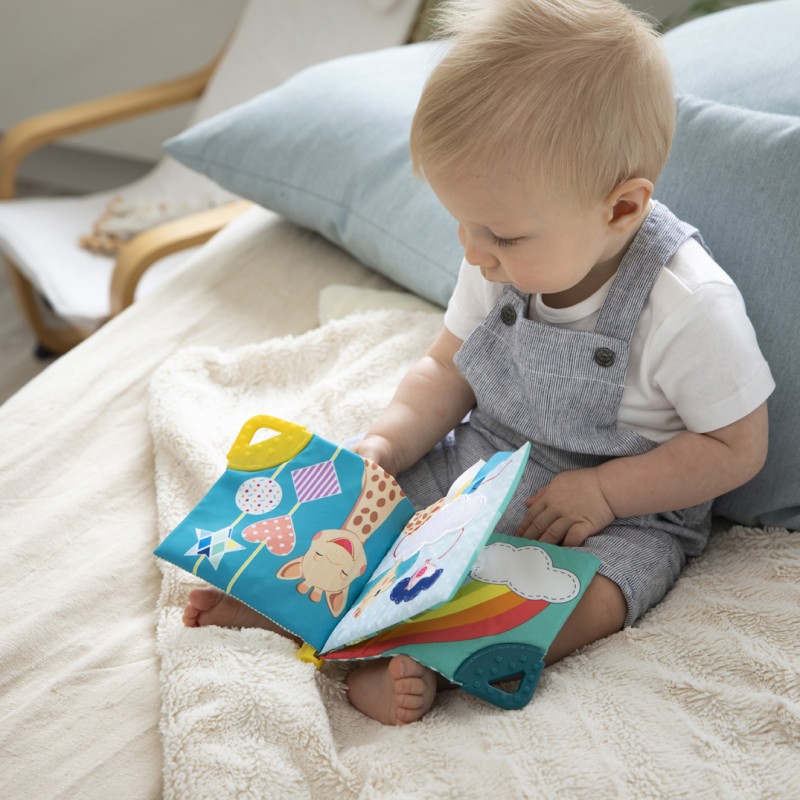 Sophie la girafe®, un hochet avec une poignée pour une bonne prise en main et un livre d'éveil Sophie la girafe® avec de nombreuses activités à découvrir au fil des 6 pages.