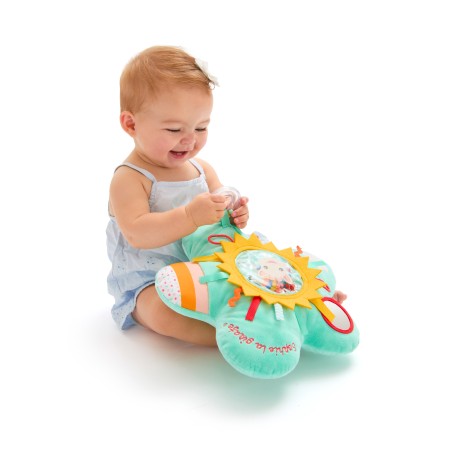 Avec plus de 6 activités sensorielles, ce coussin accompagne bébé partout ! Léger et nomade, il se glisse facilement dans la poussette ou la voiture pour transformer chaque trajet en moment de découverte.
