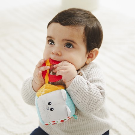 Plus de 10 activités pour éveiller les sens de bébé tout en s’amusant ! De nombreuses activités pour développer sa motricité fine, éveiller sa curiosité et stimuler ses sens grâce à des couleurs vives, différentes textures, un anneau de dentition, un miroir, un grelot et d’autres nombreuses surprises à découvrir.