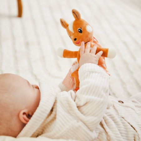 Des couleurs et des textures variées pour éveiller les sens de bébé. Avec attache-sucette Velcro®.