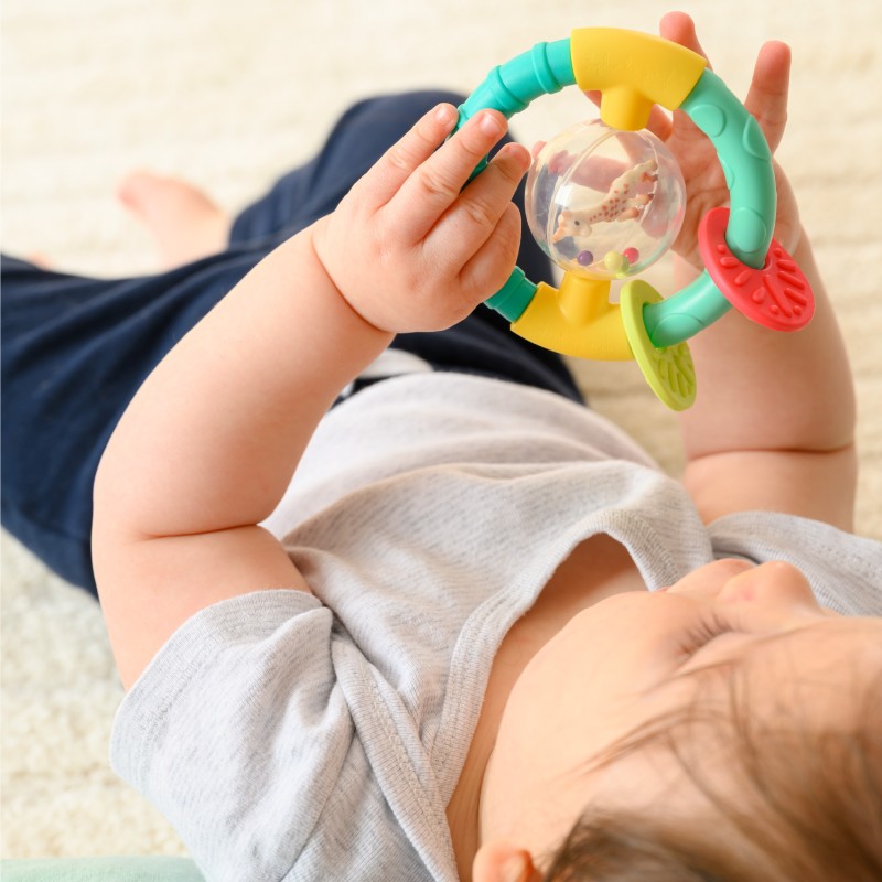 Le Hochet boule Sophie la girafe 2 en 1 est à la fois un hochet et un anneau de dentition !