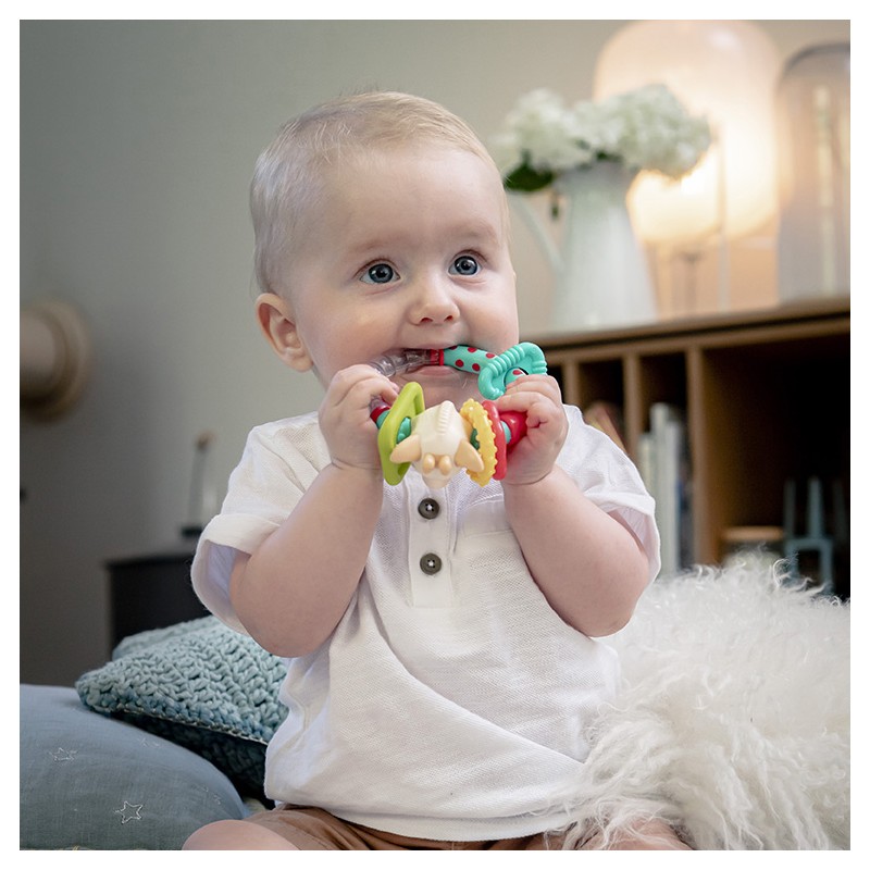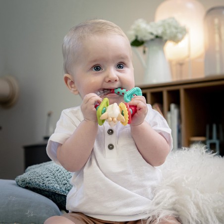 Aux couleurs vives pour attirer l'attention de bébé, des matières souples et dures à mordiller pour soulager les gencives douloureuses.