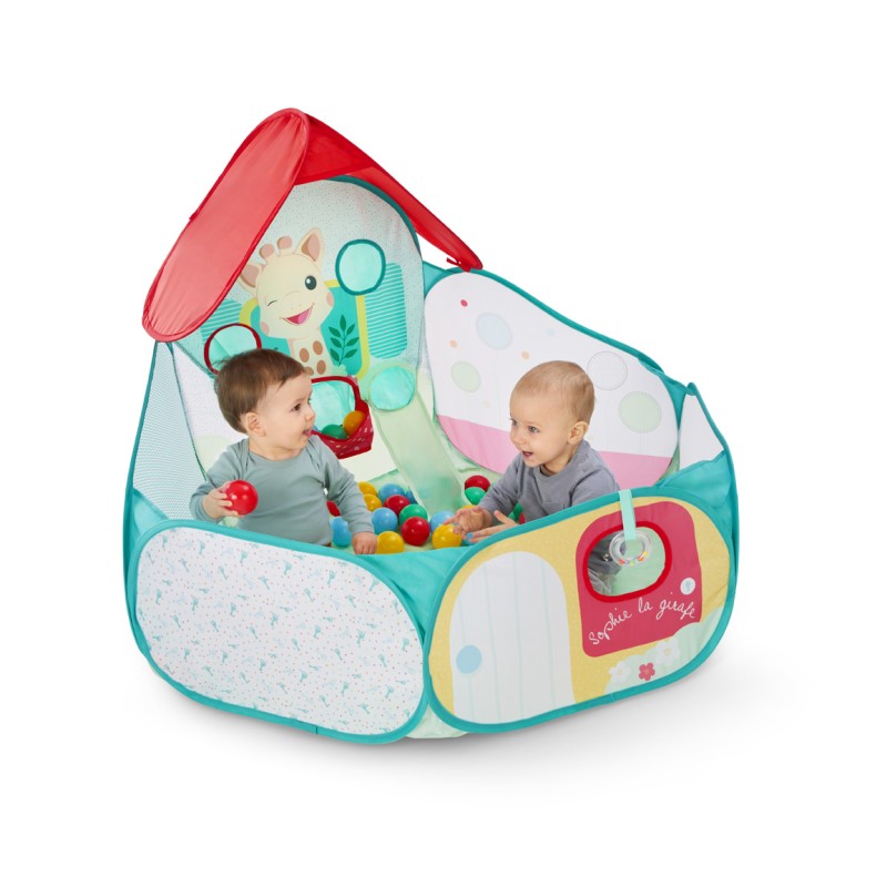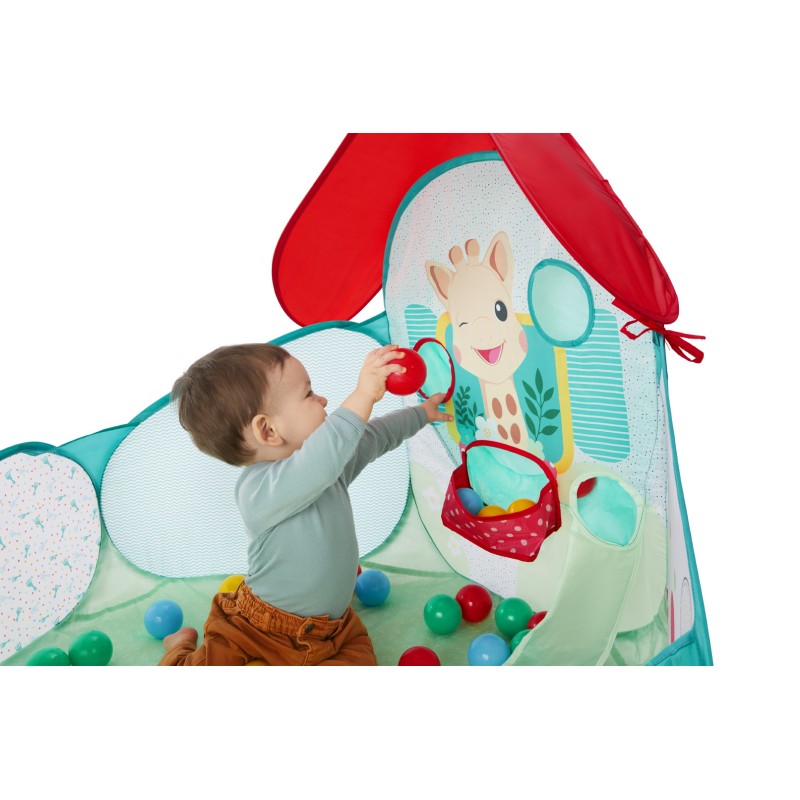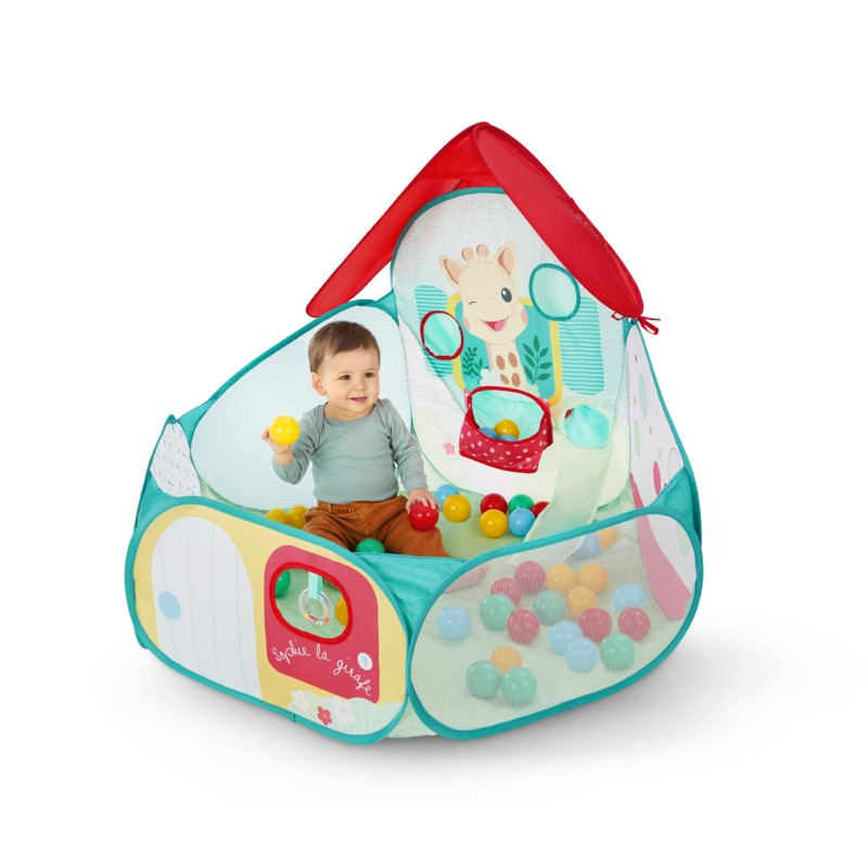 Votre tout-petit va adorer plonger dans l’univers coloré de cette adorable piscine à balles Sophie la Girafe. Un espace parfaitement adapté ou bébé peut ramper, s'assoir et jouer tout en développant sa motricité, sa coordination et sa curiosité.