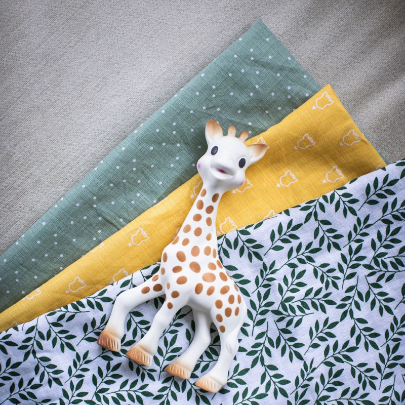Accessoire indispensable de bébé, les langes Sophie la girafe servent aussi bien de :