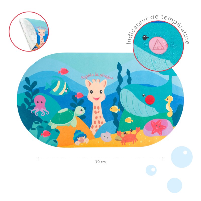 Bébé est bien installé et ne risque pas de glisser. Maman et papa peuvent vérifier à tout moment la bonne température de l'eau, en un clin d'oeil.
