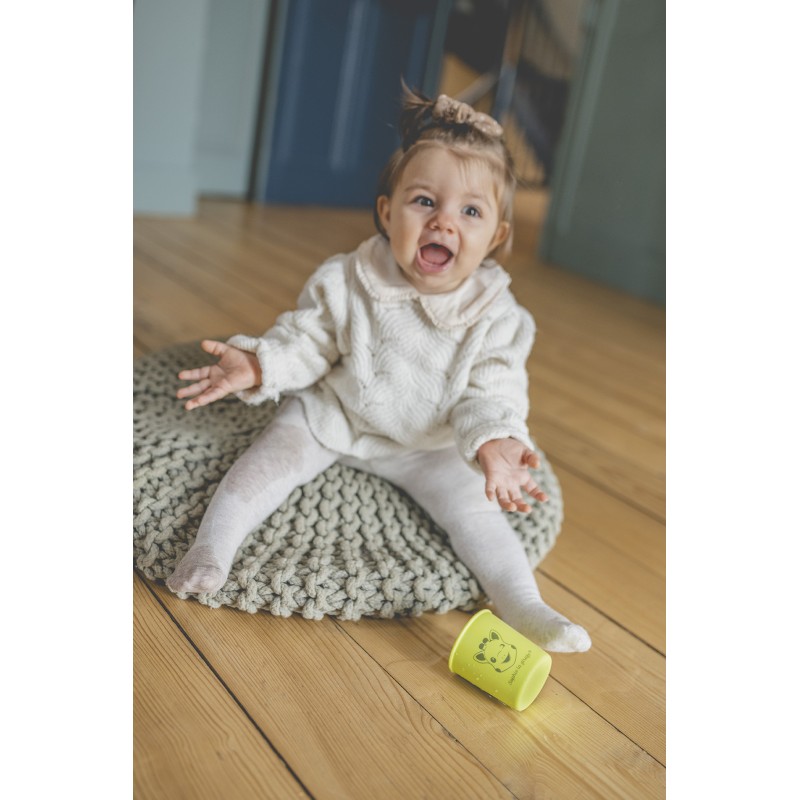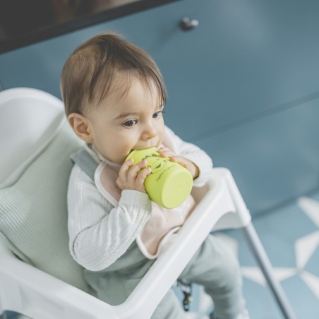 Un verre en matière 100% silicone, douce au toucher et incassable.